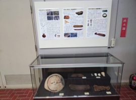 - 今回の展示品は、下長遺跡出土の土器と木器、砥石です。