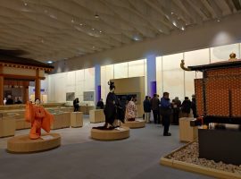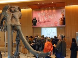 - 琵琶湖湖底遺跡の展示ブースは、一際見学者が!