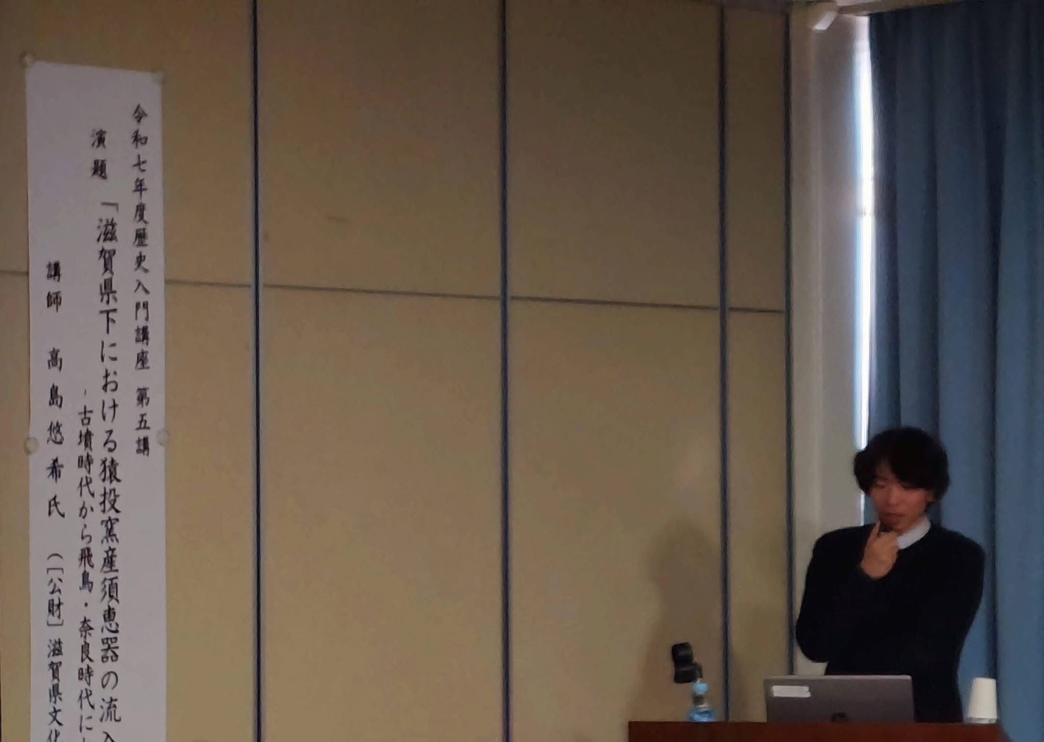 埋蔵文化財センター | 守山の文化財 第5回歴史入門講座を開催いたしました! 2025年12月20日 12月20日㈯、本年最後となる講座第5講「滋賀県下における猿投窯産須恵器の流入」を開催いたしました。講師は高島悠希さん([公財]滋賀県文化財保護協会)、瀬戸市生まれの高島さんの研究テーマは愛知県須恵器です。猿投窯は古墳時代中期以降、大阪府陶邑窯と並ぶ須恵器の2大拠点生産でした。陶邑産須恵器との違いや滋賀県内への流入について、お話していただきました。高島さん、ありがとうございました!