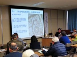 - 昨年、現地説明会が開催された前方後方形周溝墓についての場面です。