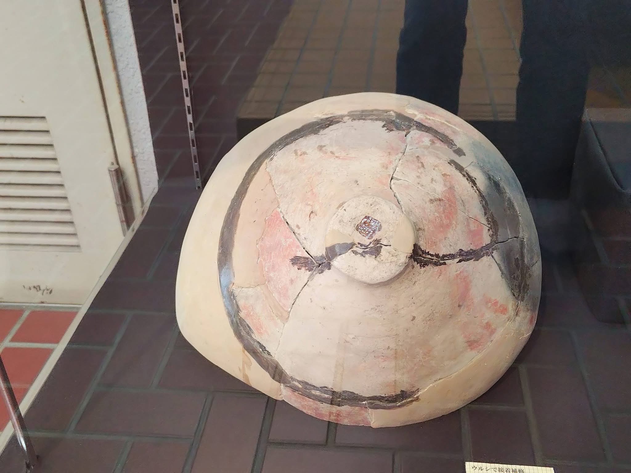 弥生時代後期の壺の下胴部には、ひび割れをウルシによる補修痕が見られます。赤彩が施されていて、なくてはならない土器だったのかもしれません。